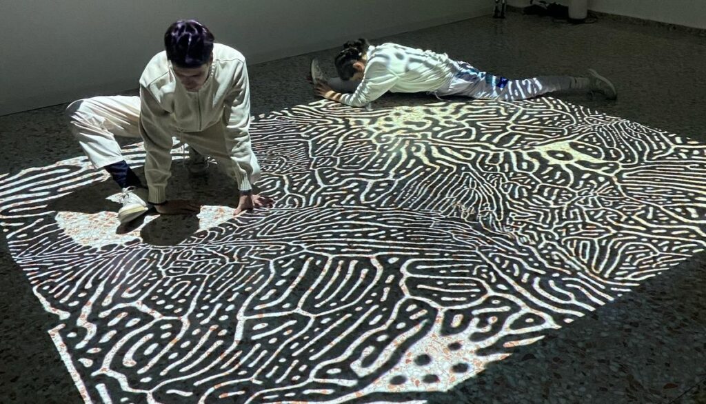 At the heart of the installation is a digital floor that reacts to each step and gesture, generating unique visual distortions and sound compositions. Guided by the dancers, the audience is encouraged to move freely and interact, becoming active contributors to a collective, ever-evolving audiovisual experience.